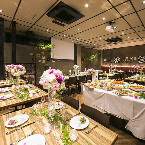 Party-floor【最大着席56名様】団体様、ウエディング2次会でも人気の高いParty-floor、用途に合わせプロジェクター、マイクなどの使用も可能です。ぜひ飲み会などの大人数様でご利用下さいませ!(*貸切ご希望のお客様、お気軽にご連絡下さいませ)