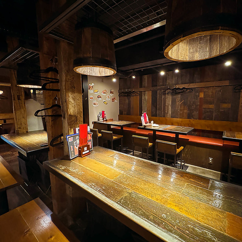 【テーブル席&カウンター席】オシャレでスタイリッシュな空間!一人でも気軽にご利用いただけるカウンター席や、開放感のあるテーブル席スペースは各種宴会にお勧め!ワインでお洒落に女子会♪
