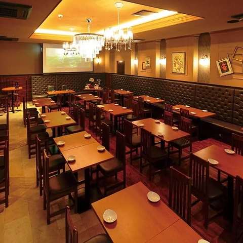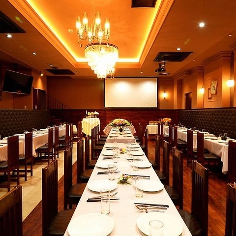 1階フロア貸切&別館貸切スペース。ブラウンを基調としたシックでお洒落な大人の1階の店内は、40名様から貸切OK。大規模なパーティーには、最大100名様までご利用可能な別館の広々貸切フロアもございます。洗練された空間で、思い出に残るひとときをお過ごしください。