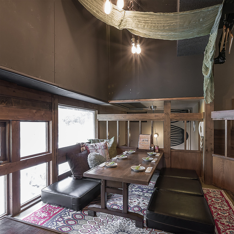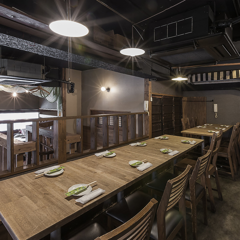 木のぬくもりを感じる落ち着いた店内は、デート・女子会・宴会・ファミリーなどどんなシーンにもぴったり★1Fは5名様個室・カウンター6席・テーブル席14席と、ロフト部分は18席をご用意♪2Fには半個室も!オーナーの遊びごころ満載ロフト付店内は解放感抜群!!宴会最大50名OK!!