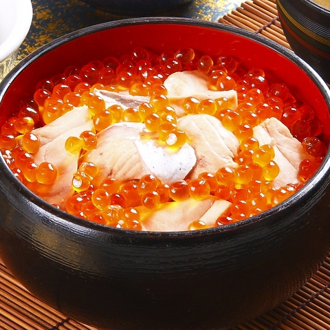 【はらこ飯】秋口から登場する「たその」の一番人気メニューです。一級品の鮭は長年の技で柔らかく炊き上げられひと口食べた瞬間に感動を覚えるほどの美味しさ。米は「宮城県産ひとめぼれ」を使用。鮭の煮汁をたっぷり含んだふっくらご飯です。本物のはらこ飯を食すなら「たその」へ。
