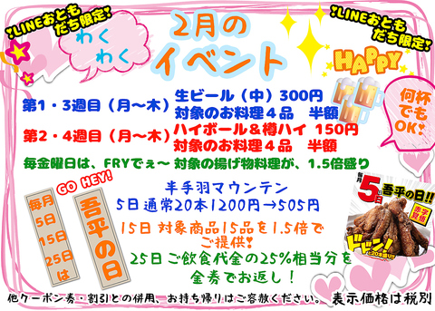 平日(月~木)開催中!5・15・25日は、吾平の日でお得満載♪