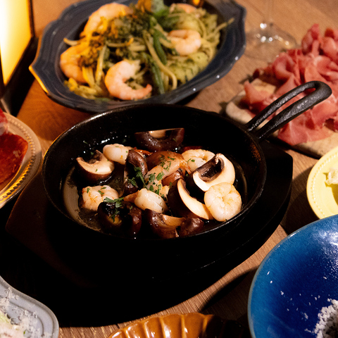 前菜、ピッツァ、パスタ、メインの肉料理、デザート付き、そして生ビール付きの飲み放題プランはかなりお得!歓送迎会にご用意してお待ちしております。