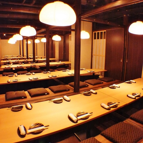 2/4/6/10/20/30…人数に合わせた完全個室席をご用意しております。落ち着いた雰囲気の和空間とゆったり寛げる掘りごたつ席でご宴会をお愉しみ下さい。銘柄鶏・海鮮舟盛りが愉しめる宴会コース多数ご用意しております。
