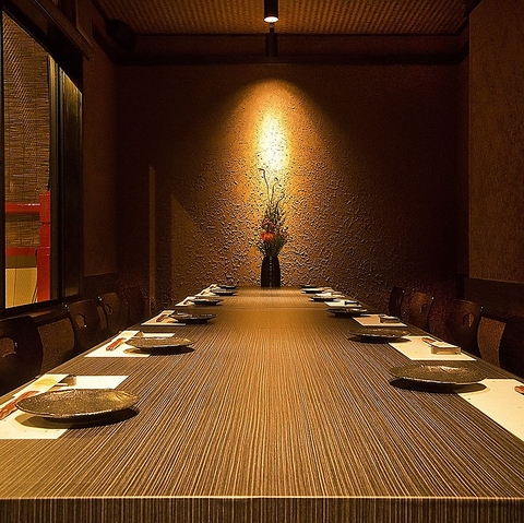 | お座敷個室 | 22名様×1 | 赤と黒を基調とした優雅な雰囲気の完全個室です。2~22名様までご利用いただける個室を多数完備。品がありつつもカジュアルにお食事を楽しめるため、気後れすることなくお過ごしいただけます。接待や会食をはじめ、記念日や恋人のワンランク上のデートなどのご利用にもおすすめです。 |