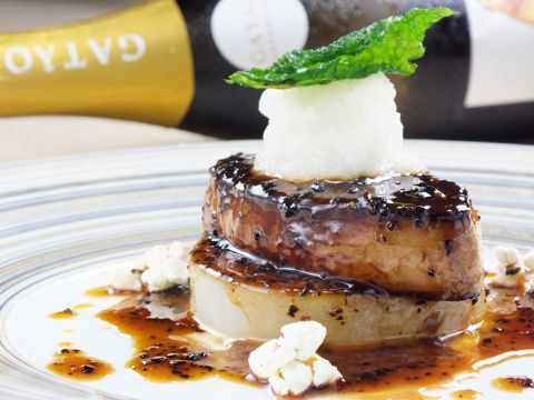 分厚い濃厚なフォアグラステーキとトリュフのソースの相性がいいフォアグラのポアレ。黒猫人気料理☆