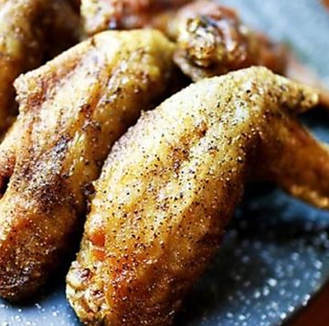 秘伝のタレと甘辛スパイシーな味わいの人気の手羽先からあげ!お酒との相性もぴったりです♪