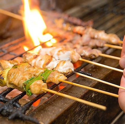 丁寧に串打ちした新鮮な鶏を炭火で焼き上げる自慢の焼き鳥!長時間かけてしこんだタレ、こだわりの塩で♪
