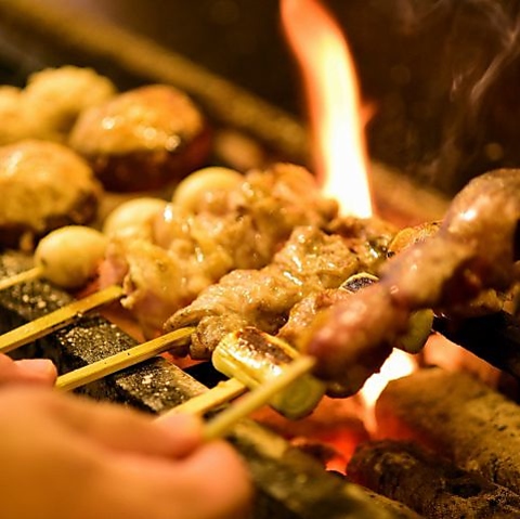 国立公園に指定された鳥取県・大山で匠が育て朝挽き大山鶏を毎日仕入れ、その日に食べてもらう分だけ串刺し。もちろん調理法にもこだわり、串焼きは一本一本丁寧に【備長炭】で焼き上げております。