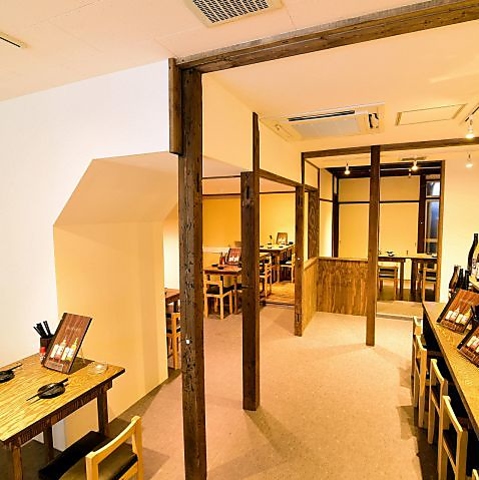 【駅徒歩1分!広々とした、ゆっくりできる店内】落ち着いた雰囲気の店内には、テーブル席がゆったりと間隔がとられ配置されています。周りを気にせずお食事いただけるので、ご友人や会社仲間との会話も自然と弾む楽しいひとときをお過ごしいただけます◎