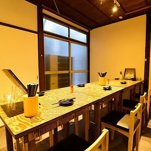 ゆったりと間隔が広めのテーブル席は、皆でワイワイにぎやかにお酒やお食事をお楽しみいただけます◎