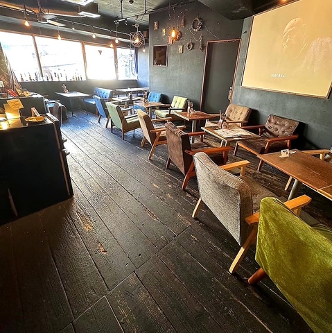 広範囲に木材を使った木の温もりを感じられるオシャレな店内♪全席ソファーの落ち着いた雰囲気でゆるりとした時間をお楽しみください☆80インチの大画面プロジェクターからはスタッフチョイスの映画が投影されています☆大人気の個室はご予約必須★貸切も20名様~OK!誕生日や突発的なサプライズもお気軽にご相談ください!