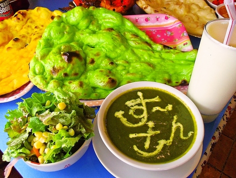 お好みに応じて辛さの調節OKだから、お子様からお年寄りまで楽しめるカレーです♪大人気のお子様セットもありますよ☆珍しいのがホウレン草を練り込んだナン!野菜もたっぷり摂れるヘルシーカレーは、スパイスもたっぷり入ってまさに【女性の味方】です☆