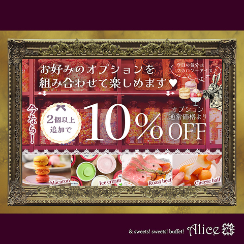 ★大好評!Alice*特製マカロンが+548円(税込)で食べ放題♪デザートにトッピングしてもOK◎