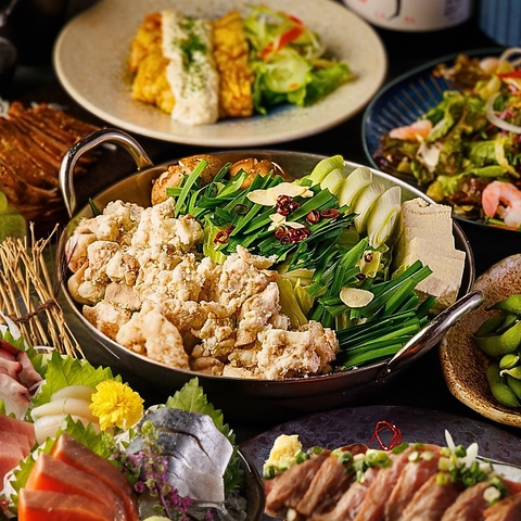 忘年会・新年会にピッタリ!10時間かけた出汁が決め手。博多風もつ鍋を主役に、旬の鮮魚やチキン南蛮まで堪能。たっぷり飲み放題付きの冬限定コースです!