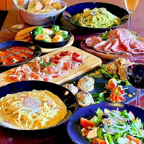 ゼミコンパやサークル打ち上げ、歓送迎会にもってこい!サラダやパスタなど、お腹もしっかり満たしたいあなたはこちら!自分の好きなタイミングで飲み物を作れるセルフドリンクバーには、サワーやハイボール、ソフトドリンクはもちろんワインやスパークリングワインまで!ワイワイ楽しみながら自分好みのドリンクが作れます♪