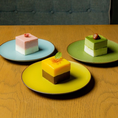 1/15から2/28限定で、見た目も鮮やかなツートンカラーのムースケーキ3種を提供。どの組み合わせが好き?