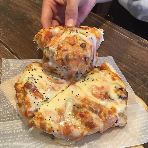 1日限定5食のボリューム満点ピザ!チーズたっぷりアメリカンスタイルです
