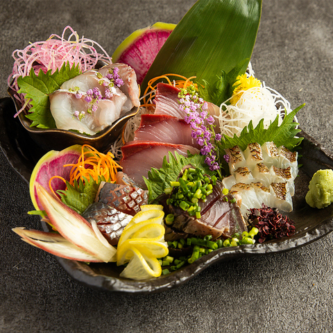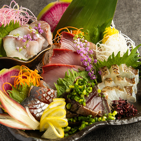 その日獲れた鮮魚の【お刺身盛り合わせ】や肉料理、季節のおすすめ料理など前菜からメイン料理までこだわりの食材を使用しております!料理長の創作和食をご堪能下さい!