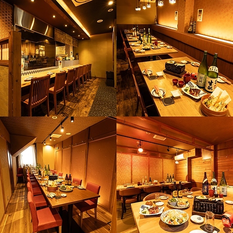 カウンター席/座敷席/テーブル席/個室を完備!会社宴会・同窓会・女子会・ご家族での食事・デート・誕生日・記念日・おもてなしの席など、様々なシーンでご利用頂けるお店です!店内の所々に飾られた和柄模様がアクセントに♪カウンターもございますのでお一人様でもお気軽にご利用ください☆♪