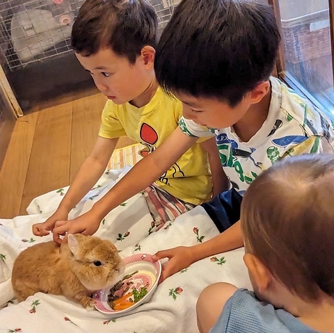 うさぎのおやつ付き、ひと組ずつのご案内なので貸切状態でお楽しみいただけます♪お子様もふれあえます!