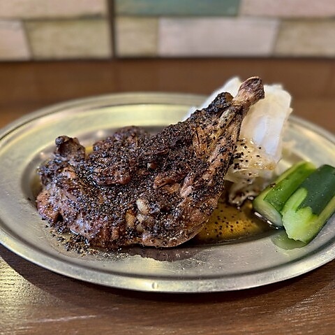 当店ならではの骨付き地鶏もも肉で焼き上げております!特製のタレで骨周りのお肉までご堪能ください!