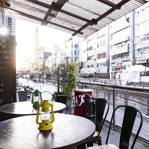 天候の良い日に大人気!!リバーウォークに特設テラスを設置しております★道頓堀の風景を楽しみながら、お食事・お酒をご堪能頂けます◇[貸切]25名様~要相談でご利用いただけます。