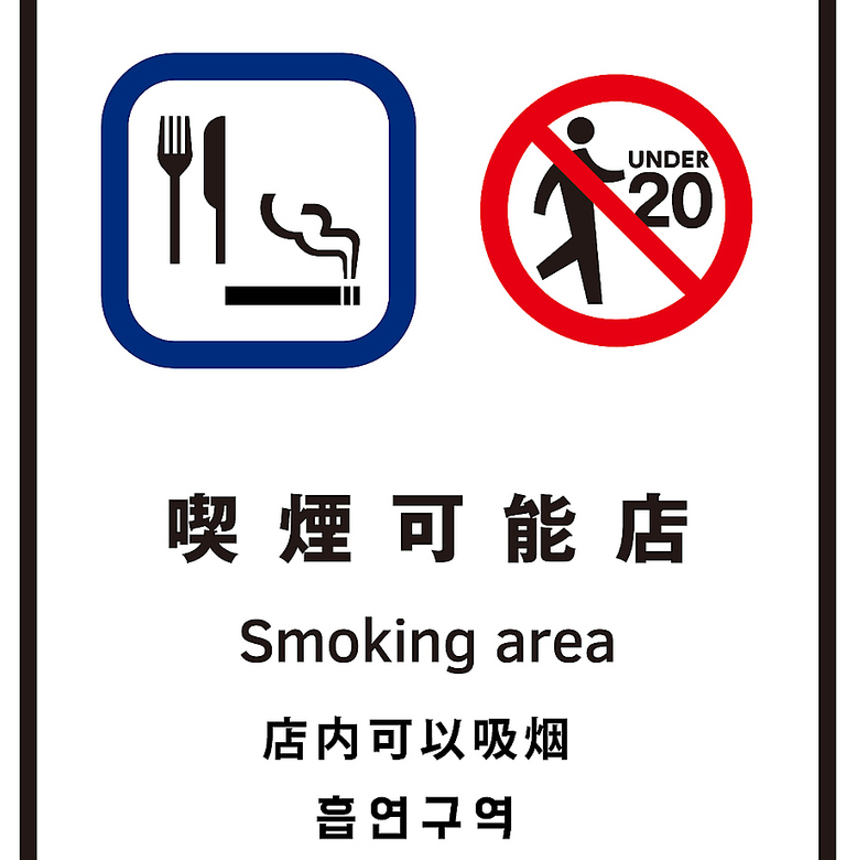 店内でタバコ吸えるようになりました!!20歳未満は入店禁止です。