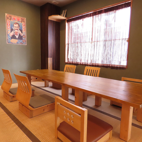 畳のおちついた雰囲気の中楽しむ宴会はゆったりと寛げ、広々としたテーブルは大人数での宴会にも安心してご利用いただけます♪最大24名様までの貸切も可能ですのでお気軽にご相談ください。