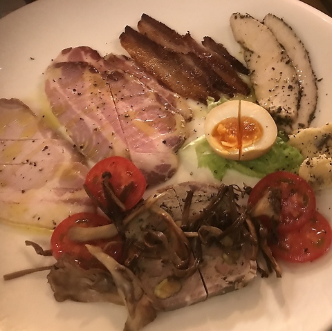 ハムは1ケ月、ベーコンは3週間とその季節や温度などによりチップやウッドを変えて作る味わいは格別。熱燻・温燻・冷燻の3つの手法を使い、素材に一番適した燻製料理をつくり上げていきます。手間暇惜しまず作る燻製の数々は一度食べると忘れられない味わいです。ワインやクラフトビールとも合う自慢の燻製を是非一度ご賞味ください。