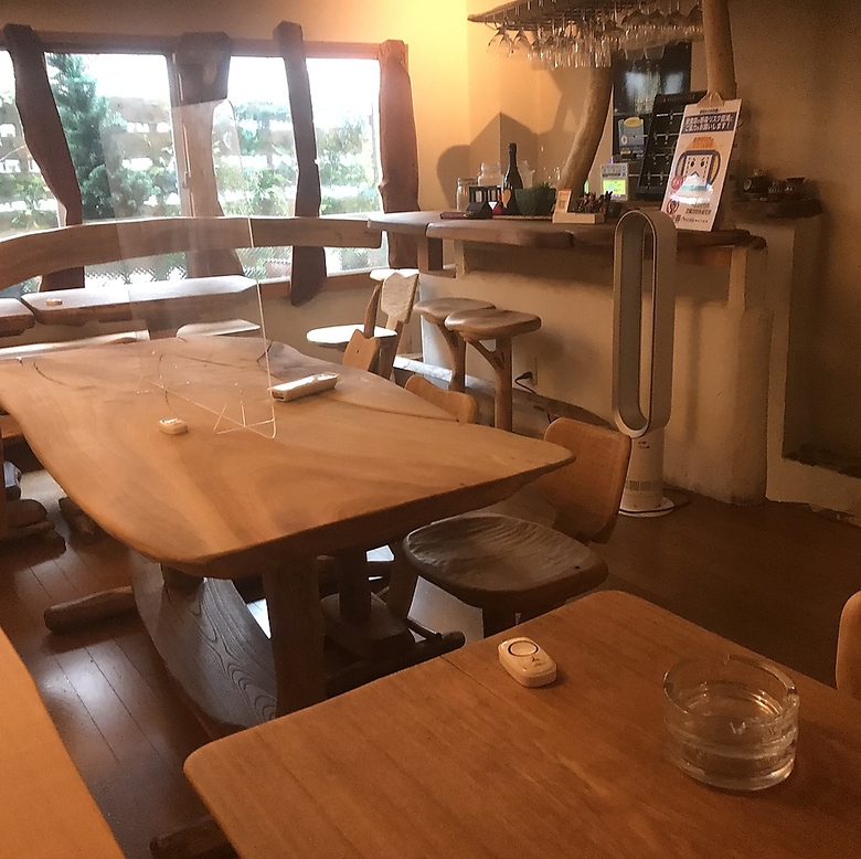 木製のインテリアで統一された店内は、木の温もり溢れる落ち着いた癒しの空間。伊豆稲取の流木作家さんに作っていただいた家具の数々。長時間座っていても疲れないように、細部までこだわった作り。毎日オイルで磨き最良の状態を保っています!1階のカウンター、2階のテーブル席共に寛げる大人の空間です。