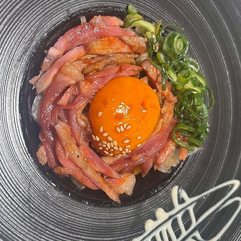イベリコ豚の希少部位セクレトを細切りにして甘辛ユッケダレと合わせました。黄身のまろやかさが加わりビールがすすむ♪