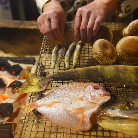 【虎々】の名物といえば、スタッフが注文を受けてから炭火で焼いて頂ける『炉端焼き』!会津に来たら是非食べてもらいたい逸品です!