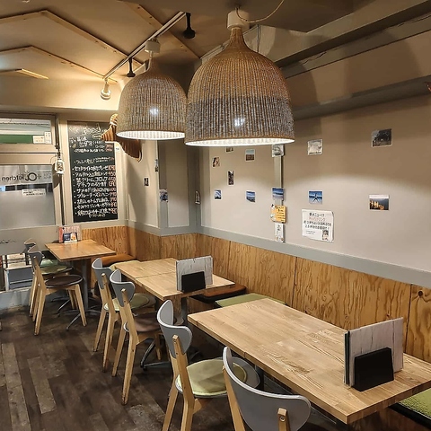 白と木目を基調としたアットホームな店内は、落ち着き度120点♪カウンターにずらっとな並ぶクラフトジンを見ながらお酒を選ぶのも楽しい!貸切は12名様より承っておりますので、各種宴会やパーティ、記念日などのご利用もお待ちしております。