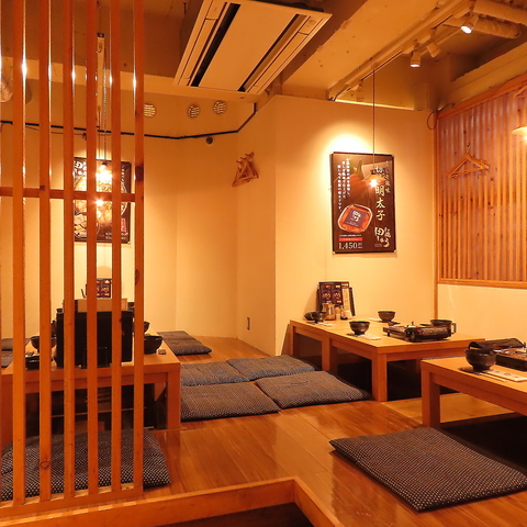 2階フロアには、少人数から大人数まで対応可能な広々とした掘りごたつ席を完備しています。竹のカーテンで仕切れば少人数での半個室として、繋げれば大人数での宴会や打ち上げにも最適です。足を伸ばして寛げる和の空間で、自慢の馬刺しやしゃぶしゃぶを囲み、賑やかなひとときをお過ごしください。