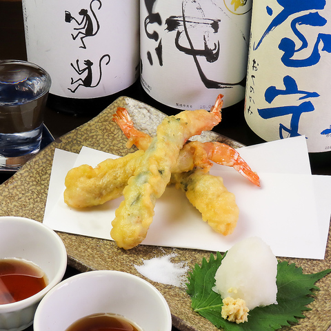 海老のプリッとした食感を大葉の香りと豚バラの旨みで包み込んだ贅沢天ぷら。ひと口ごとに広がる“旨みの三重奏”がクセになると評判で、一度食べたらハマる人続出の人気メニューです。