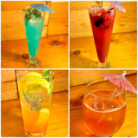 | 【カクテル】 | カシスベース(カシスウーロン、カシスソーダ、カシスオレンジ)ピーチベース(ファジーネーブル、レゲエパンチ、ピーチソーダ)マンゴー(マンゴーオレンジ、マンゴーソーダ)ディタ(ディタオレンジ、ディタソーダ)梅酒(梅酒ロック、梅酒ソーダ) |