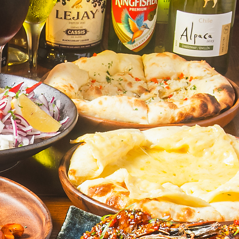 外は香ばしくパリっと、中はたっぷりのとろけるチーズが入っております。素材にもこだわっており女性人気No1のお料理となっております。他にもガーリックナンやバジルナンなどナンの種類も豊富♪当店にお越し頂いた際には是非1度お召し上がり下さい♪