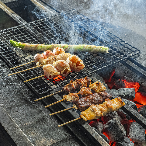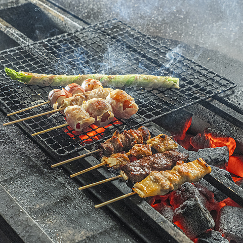 定番の焼き鳥はもちろん女性やお子様に人気の「チーズ巻」「トマト豚巻」「アスパラ巻」などなど◎巻串も種類豊富にご用意しております!!1つ1つのネタが多きく、炭火でじっくり焼き上げる最高の一品です★是非お気に入りの一本を見つけてみてくださいね。巻物串は275円(税込)~ご用意しております!