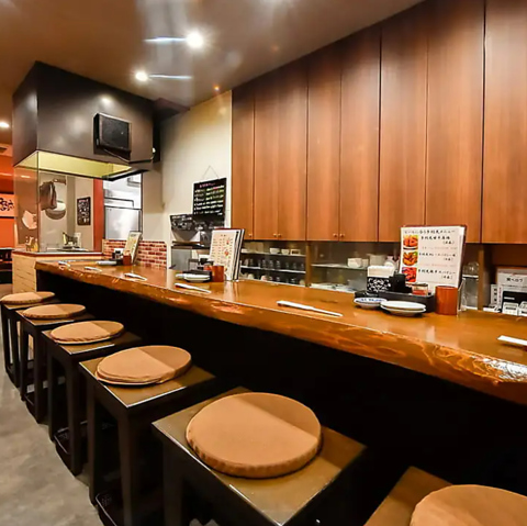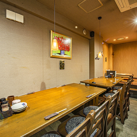 【豪快焼鳥】この道一筋のベテラン職人が丹精込めて焼き上げる串焼き。調理の様子を見ながら、ごゆっくりとお食事を味わえるカウンターのお席もお勧めです♪お仕事帰りの一杯や、ご夫婦、カップルでのご利用など少人数様でのご利用にもピッタリ◎間接照明が灯すシンプルな空間で、ごゆっくりとお寛ぎください!!
