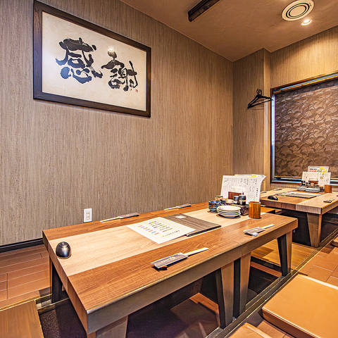 【堀りごたつ席完備◎】掘りごたつのお座敷は各種ご宴会にもおすすめです。最大20名様での会社宴会や打上げ、誕生日会など◎幅広いシーンでご利用いただけます。温かな明かりが灯る店内で、皆さまでたくさん食べて、飲んで、笑って、心に残る素敵なひとときをお過ごしください♪皆さまのご来店を心よりお待ちしております。