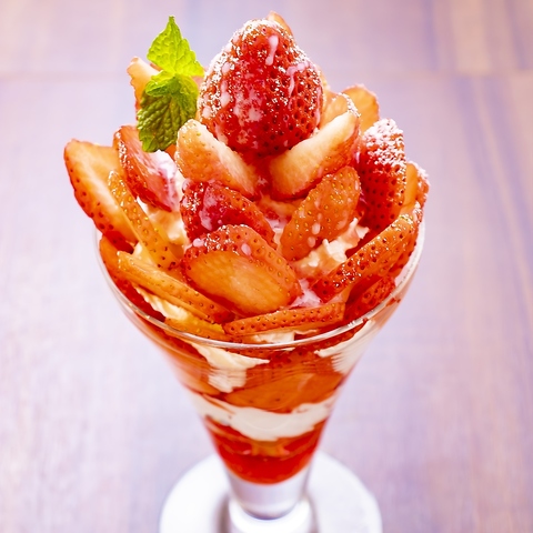苺を贅沢に詰め込んだ「いちごパフェ」、茶母名物ホットックとのコラボ「ベリーベリーホットック」、ちょっと大人の贅沢パフェ「チョコ&ピスタチオ」の3種が新登場。苺好きな方におすすめです!