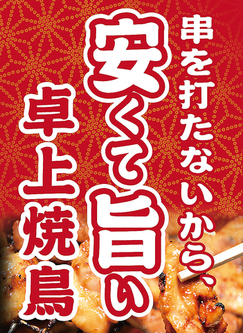当店おすすめ★卓上で焼く鳥焼肉を298円~ご用意!串を打たないから鮮度抜群で旨い!人気No.1の「もも」、おすすめは「はつ」と「レバー」!その他多数の種類をご用意!牛や豚、羊の焼肉もあります!