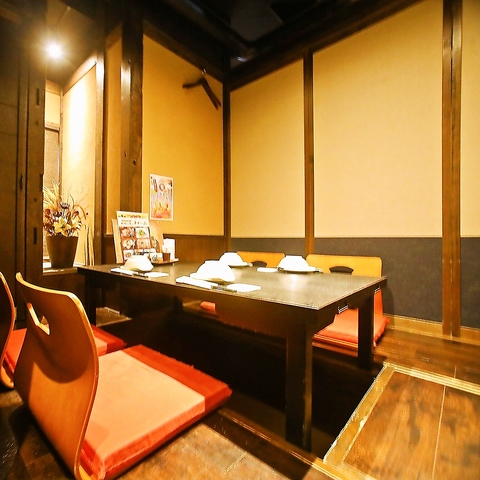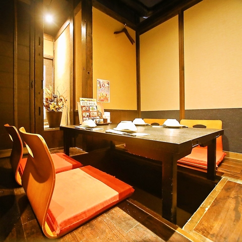 掘りごたつタイプのお席は足をおろしてゆったりおくつろぎ頂けます♪様々な個室をご用意しておりますので、人数に合わせたお席にご案内いたします!会社飲み会や2次会、お友達同士、ご家族でのご利用にもおすすめ◎古民家風の造りはまどろみの時間を演出。自慢の創作料理で最高の時間をお過ごしください♪