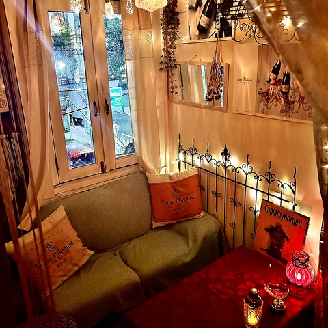 【カップルシート有】横並びでお座り頂けるソファー席あり!小さな扉を開くと異空間が広がる店内はまさにデートにオススメのお店!間接照明の温かみ溢れる空間でゆったりお客様だけのお時間をお過ごし下さい。記念日や誕生日などのお祝い事、サプライズの演出なら当店で!もちろんお一人様でもゆっくりご利用頂けます^ ^