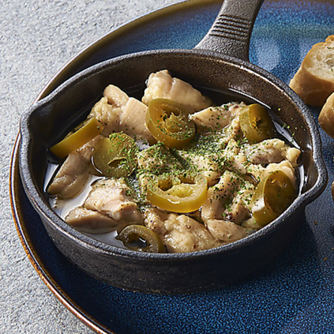 農家直送のフレッシュキャベツをボリューミーに蒸し焼き★自家製ガーリックオイルにアンチョビを合わせた、食欲かき立てるお酒がススム逸品です!白ワインのお供にどうぞ♪