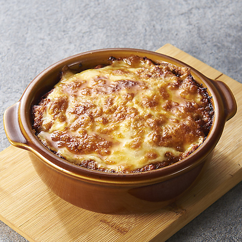 八百屋バルの特製溶岩パスタ!グツグツに煮込まれた自家製ミートソースとたっぷり乗ったチーズがまるで溶岩のようなパスタです♪見た目も楽しめる新名物をぜひご堪能ください!