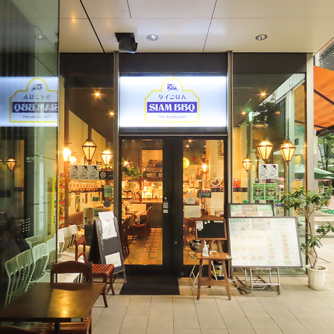 大人気のテラス席はお洒落な開放的空間★お席はテーブルごとにパラソルを設置しており、ビルに囲まれているのも相まって直射日光が当たりにくいのも魅力です。タイ風屋台もあり、タイビールなどのキンキンに冷えたお飲み物やお弁当もご注文いただけます◎夜になるとLEDのキャンドルが揺れ幻想的な雰囲気を演出いたします♪