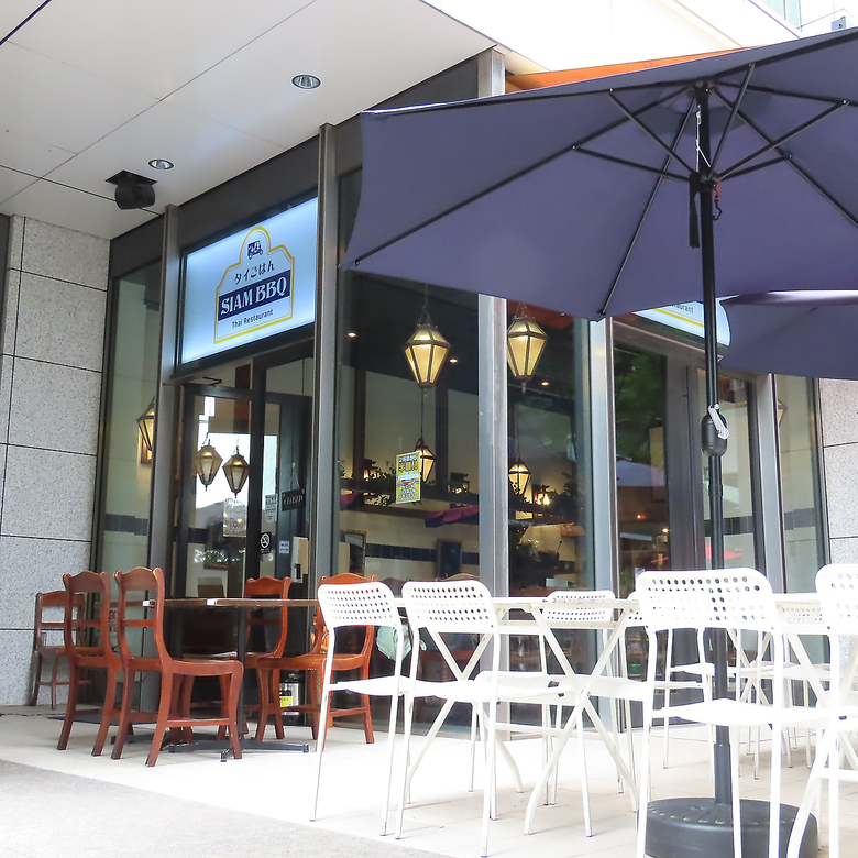 お洒落な開放的空間が大人気のテラス席★テーブルごとにパラソルを設置しており、ビルに囲まれているのも相まって直射日光が当たりにくいのも魅力のお席です。タイ風屋台もあり、タイビールなどのキンキンに冷えたお飲み物やお弁当もご注文いただけます◎夜になるとLEDのキャンドルが揺れ幻想的な雰囲気を演出いたします♪