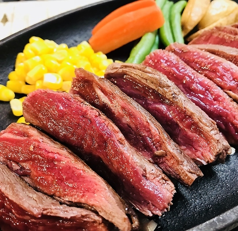 ステーキはがっつり!1ポンドステーキ。ひとりでがっつり食べるもよし、お友だちやご家族とシェアして食べるもよし!